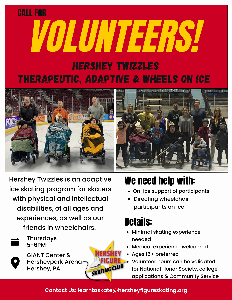 Each of our participant skaters will be paired with a volunteer buddy, both on and off ice. You do not need to be an expert skater to volunteer (just be comfortable on the ice). If you are interested in being a volunteer buddy to one of our amazing Hershey Twizzles skaters, please fill out the form "Volunteer Here". Volunteer as often as you like, as your schedule permits. Volunteers are needed every week!